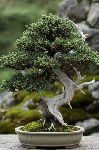 A low-growing evergreen conifer from Japan. It is the "purist's" choice, capable of living for centuries. Its flexibility allows for extreme "windswept" or "cascade" styling.